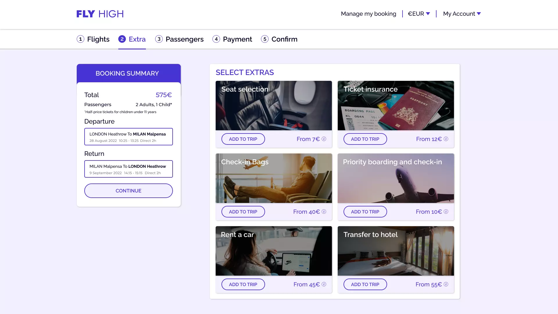 So, that's why on the flight results page, I displayed the price per passenger and simplified the choices by adding filters based on your preferences. I also decided to add a progress bar to keep users informed about their task's remaining steps.
