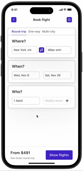 As a result, the system has to repeatedly fetch and update data. Imagine if you could adjust all the price-related details on the first screen and see an estimated price immediately, before even viewing the results.