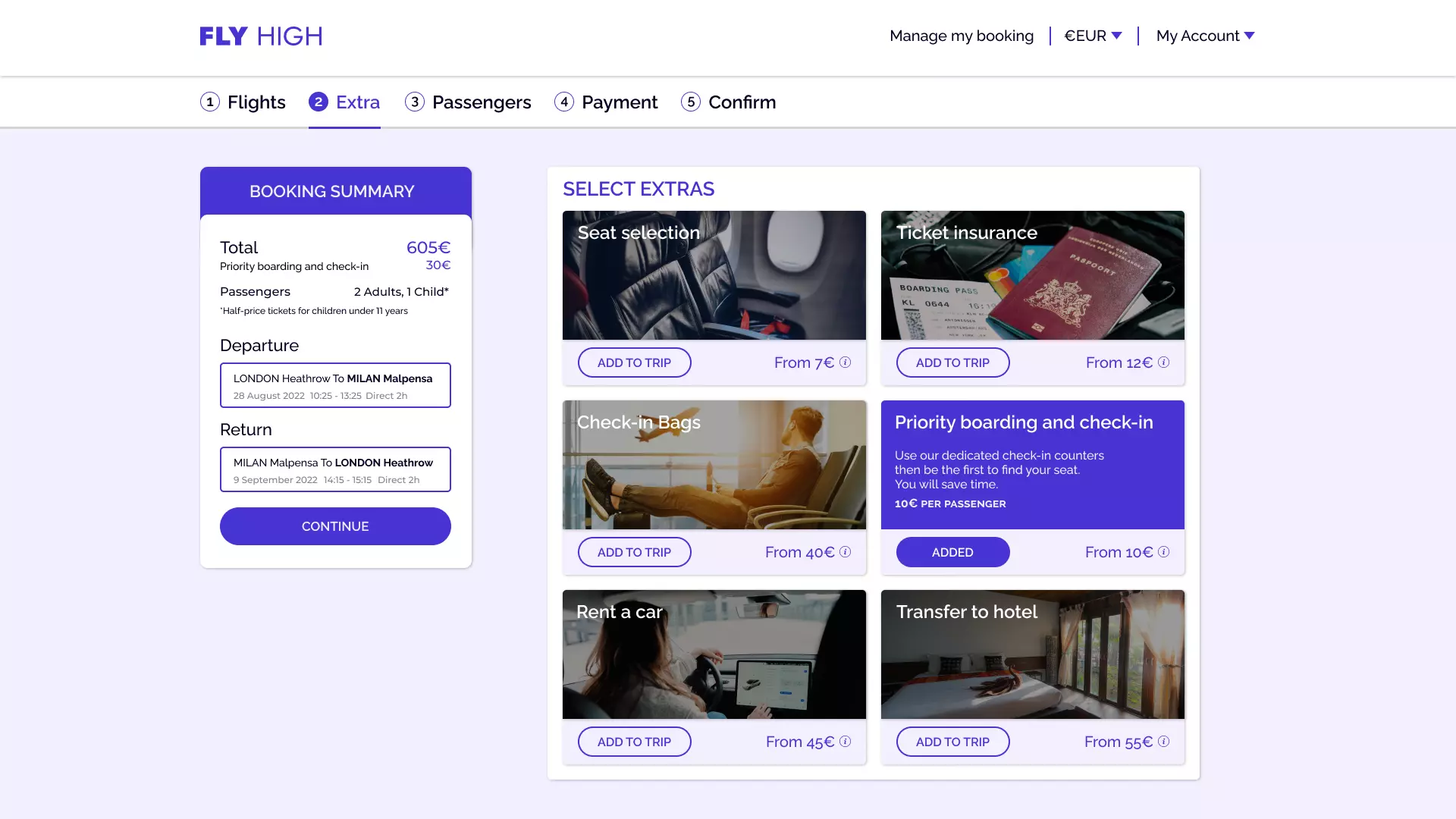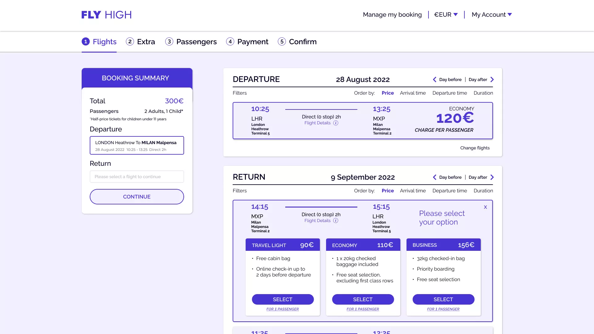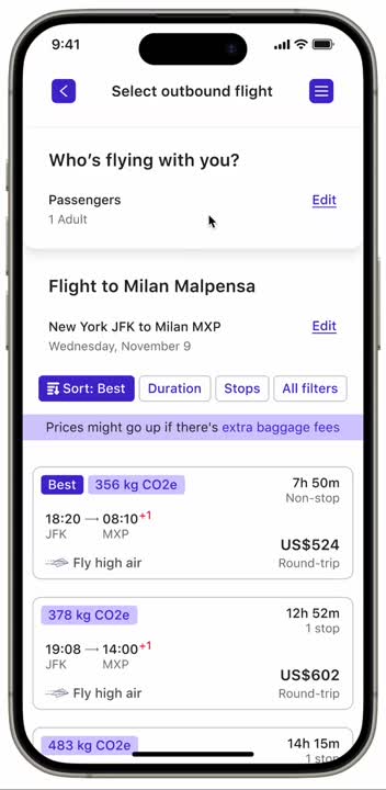 So, that's why on the flight results page, I displayed the price per passenger and simplified the choices by adding filters based on your preferences. I also decided to add a progress bar to keep users informed about their task's remaining steps.